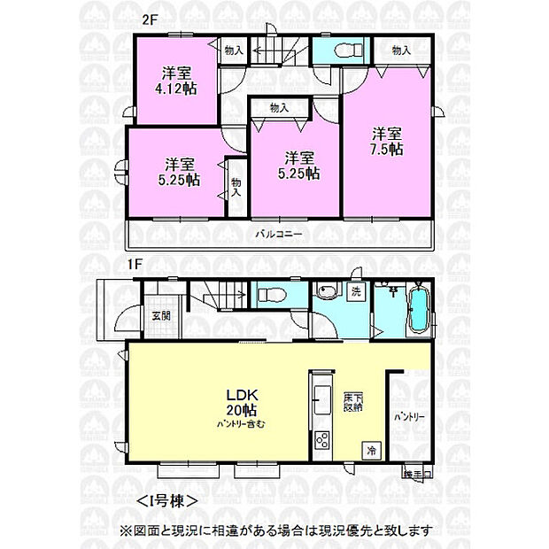 LDK20帖の対面キッチン/カースペース並列2台(車種による)/前面道路5m/主寝室は7.5帖/パントリー