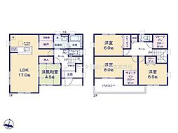| 間取り | 4LDK 間取り内訳:リビングダイニングキッチン 16帖(1階)・和室 6畳(1階)・洋室 8帖(2階)・洋室 5.2帖(2階)x2 |