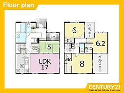 | 間取り | 3LDK 間取り内訳:リビングダイニングキッチン 21.5帖(1階)・洋室 8帖(2階)・洋室 6帖(2階)・洋室 6帖(2階) |