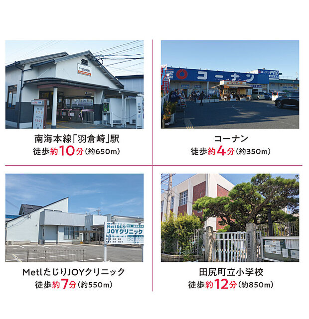 子育てに優しい田尻町。小学校まで徒歩約12分の落ち着いた環境。 田尻町立小学校まで徒歩約12分。落ち着いた住宅街の中にあり、お子様の通学も安心です。 ラスト1区画の4号地【46.74坪】では、自由設計を活かして、BBQができるお庭や、広々としたカースペース、大型パントリーなど、ゆとりがあるからこそ叶う理想のプランを実現できます。 南海本線「羽倉崎」駅まで徒歩10分。通勤・通学に便利な駅チカ立地。 毎日の暮らしに欠かせない「駅までの距離」を重視する方に最適。