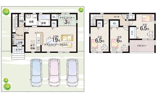 • 「建築条件付き土地」の「建物プラン例」は、土地購入者の設計プランの一例であり、プランの採用可否は任意です。