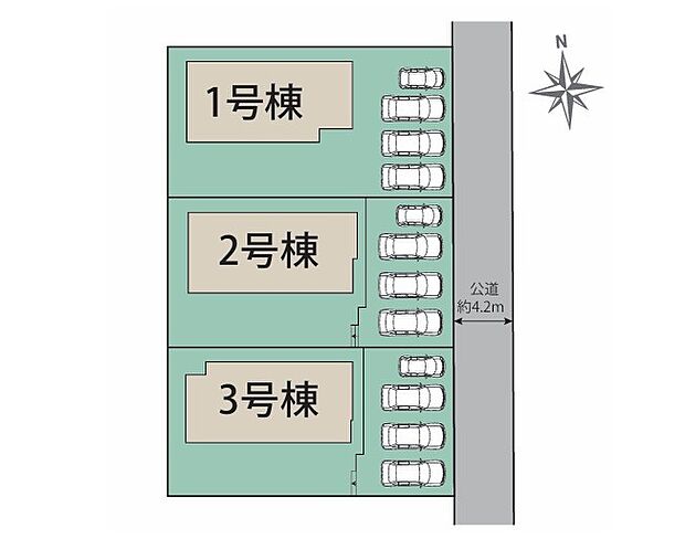 1号棟:東4.2m /2号棟:東4.2m /3号棟:東4.2m