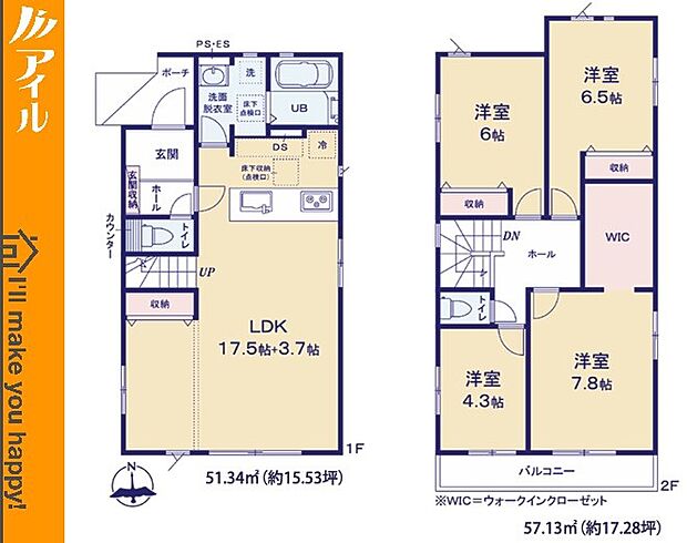 • 「建築条件付き土地」の「建物プラン例」は、土地購入者の設計プランの一例であり、プランの採用可否は任意です。