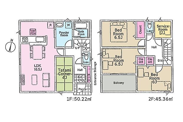 間取り内訳:リビングダイニングキッチン 16.5帖(1階)・その他 4帖(1階)・洋室 6.5帖(2階)x2・洋室 6帖(2階)・収納 2帖(2階)