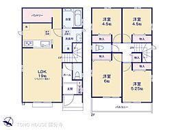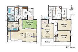 間取り内訳:洋室 8.5帖(1階)・収納 5.2帖(1階)x2・リビングダイニングキッチン 22.2帖(2階)