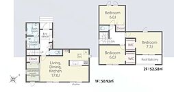 | 間取り | 4LDK 間取り内訳:リビングダイニングキッチン 17帖(1階)・洋室 4.7帖(1階)・洋室 7.2帖(2階)・洋室 6.2帖(2階)・洋室 6帖(2階) |
