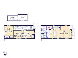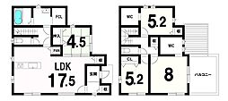 | 間取り | 4LDK 間取り内訳:リビングダイニングキッチン 18.1帖(1階)・洋室 4.5帖(1階)・洋室 5.2帖(2階)・洋室 5.2帖(2階)・洋室 6帖(2階) |