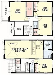 間取り内訳:リビングダイニングキッチン 19.5帖(1階)・洋室 7.2帖(1階)・洋室 5.2帖(2階)・洋室 5.1帖(2階)・洋室 4.6帖(2階)