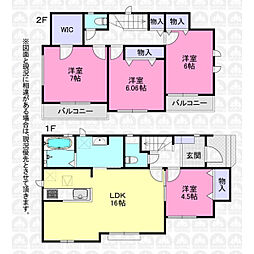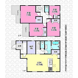 | 間取り | 4SLDK 間取り内訳:リビングダイニングキッチン 15.7帖(1階)・洋室 3.2帖(2階)・洋室 5.3帖(2階)x2・洋室 7.5帖(2階) |