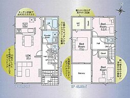 | 間取り | 3LDK 間取り内訳:リビングダイニングキッチン 20帖(1階)・洋室 5.2帖(2階)・洋室 7帖(2階)・洋室 7.5帖(2階) |