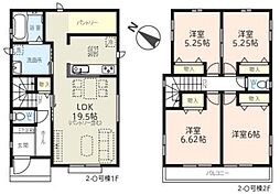 | 間取り | 4LDK 間取り内訳:リビングダイニングキッチン 19帖(1階)・洋室 6.5帖(2階)・洋室 6帖(2階)・洋室 5.2帖(2階)・洋室 4.5帖(2階) |