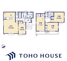 | 間取り | 4LDK 間取り内訳:リビングダイニングキッチン 17帖(1階)・和室 4.5畳(1階)・洋室 7帖(2階)・洋室 5.2帖(2階) |