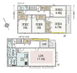 間取り内訳:リビングダイニングキッチン 18.2帖(1階)・洋室 6.6帖(2階)x2・洋室 5帖(2階)・洋室 4.5帖(2階)