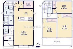 | 間取り | 3LDK 間取り内訳:リビングダイニングキッチン 15帖(1階)・洋室 4.5帖(1階)・洋室 7.5帖(2階)・洋室 5.2帖(2階)・洋室 4.5帖(2階) |
