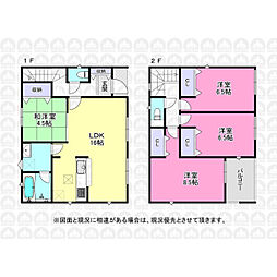 | 間取り | 4LDK 間取り内訳:リビングダイニングキッチン 15帖(1階)・和室 5.2畳(1階)・洋室 7.7帖(2階)・洋室 6帖(2階)・洋室 6帖(2階)x2 |