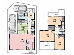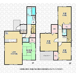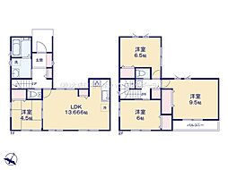 | 間取り | 4LDK 間取り内訳:リビングダイニングキッチン 13.6帖(1階)・和室 4.5畳(1階)・洋室 9.5帖(2階)・洋室 6.5帖(2階)・洋室 6帖(2階) |