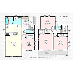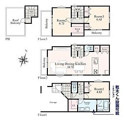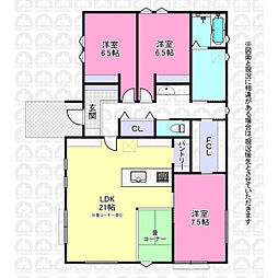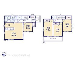 | 間取り | 3LDK 間取り内訳:リビングダイニングキッチン 18帖(1階)・洋室 7.5帖(1階)・洋室 6.5帖(1階)x2 |