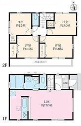 | 間取り | 4LDK 間取り内訳:リビングダイニングキッチン 17帖(1階)・洋室 6帖(2階)・洋室 5帖(2階)・洋室 4.5帖(2階)・洋室 4.5帖(2階) |