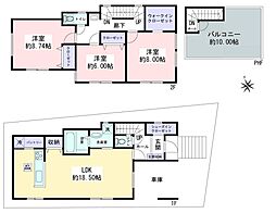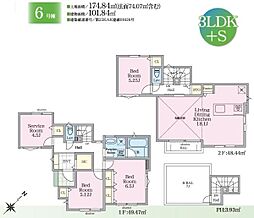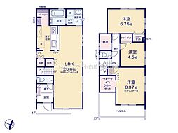 | 間取り | 4LDK 間取り内訳:リビングダイニングキッチン 16帖(1階)・和室 6畳(1階)・洋室 8帖(2階)・洋室 6帖(2階)x2 |