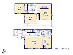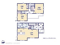| 間取り | 3LDK 間取り内訳:リビングダイニングキッチン 18帖(1階)・洋室 7.2帖(2階)・洋室 6帖(2階)・洋室 6帖(2階) |