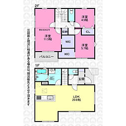 間取り内訳:リビングダイニングキッチン 20.8帖(1階)・洋室 7帖(2階)・洋室 5.7帖(2階)・洋室 4.5帖(2階)x2