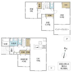 | 間取り | 3LDK 間取り内訳:リビングダイニングキッチン 18.5帖(1階)・洋室 6.5帖(2階)・洋室 5.2帖(2階)・洋室 4.7帖(2階) |