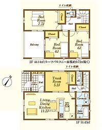 | 間取り | 4LDK 間取り内訳:リビングダイニングキッチン 16帖(1階)・洋室 4.5帖(1階)・洋室 7帖(2階)・洋室 5.3帖(2階)・洋室 6帖(2階) |