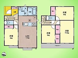 | 間取り | 3LDK 間取り内訳:リビングダイニングキッチン 17.5帖(1階)・洋室 7.3帖(2階)・洋室 6.7帖(2階)・洋室 5.2帖(2階) |