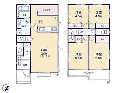 | 間取り | 4LDK 間取り内訳:リビングダイニングキッチン 20帖(1階)・洋室 7.5帖(2階)・洋室 5帖(2階)・洋室 4.5帖(2階)x2・洋室 |