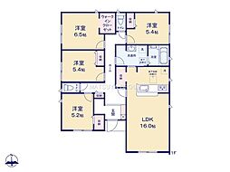 | 間取り | 4LDK 間取り内訳:リビングダイニングキッチン 16帖・洋室 6.1帖・洋室 5.4帖・洋室 5.4帖・洋室 5帖 |