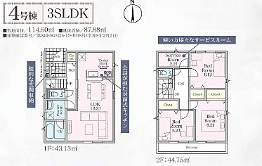 | 間取り | 3SLDK 間取り内訳:リビングダイニングキッチン 16.3帖(1階)・洋室 6.2帖(2階)・洋室 6.1帖(2階)・洋室 5.2帖(2階)・収納 2.2帖(2階) |