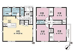 | 間取り | 3LDK 間取り内訳:リビングダイニングキッチン 12.7帖(2階)・洋室 6帖(3階)・洋室 5.3帖(3階)・洋室 5.1帖(1階) |