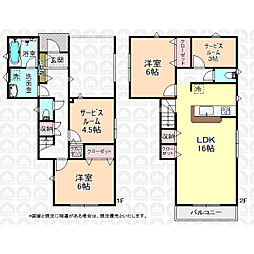 | 間取り | 4LDK 間取り内訳:リビングダイニングキッチン 16帖(1階)・洋室 4.5帖(1階)・洋室 8帖(2階)・洋室 5.2帖(2階)x2 |