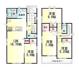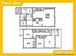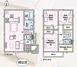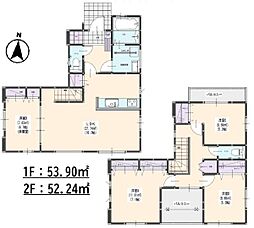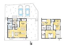 間取り内訳:リビングダイニングキッチン 16帖(1階)・洋室 4.5帖(1階)・洋室 5.2帖(2階)・洋室 5.2帖(2階)・洋室 8帖(2階)