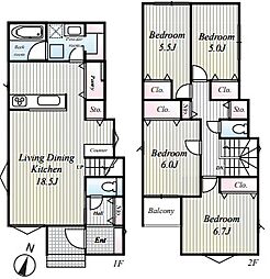 | 間取り | 3LDK 間取り内訳:洋室 6.7帖・洋室 6.7帖・洋室 5.2帖・リビングダイニングキッチン 17帖 |