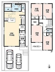 間取り内訳:洋室 7.2帖・洋室 5.7帖・洋室 5.7帖・洋室 5.2帖・リビングダイニングキッチン 19帖