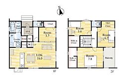 間取り内訳:リビングダイニングキッチン 19帖(1階)・洋室 7.5帖(2階)・洋室 6.5帖(2階)・洋室 5.3帖(2階)・洋室 4.5帖(2階)
