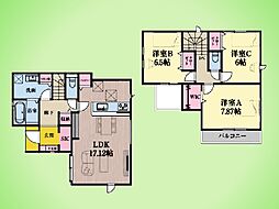 | 間取り | 4LDK(パントリー、ウォークインクローゼット) 間取り内訳:リビングダイニングキッチン 19.5帖(1階)・洋室 7.5帖(2階)・洋室 5.3帖(2階)・洋室 5.3帖(2階)・洋室 4.5帖(2階) |