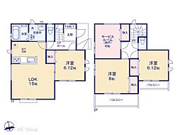 間取り内訳:リビングダイニングキッチン 15.5帖(1階)・和室 5.6畳(1階)・洋室 6帖(2階)・洋室 6帖(2階)・洋室 8帖(2階)
