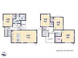 | 間取り | 4LDK(1階和室(洋室仕様)) 間取り内訳:リビングダイニングキッチン 17帖(1階)・和室 4.5畳(1階)・洋室 7帖(2階)・洋室 5.2帖(2階)x2 |