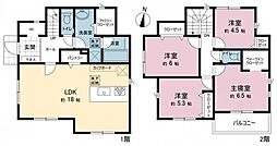 | 間取り | 4LDK(WIC シューズクローク パントリー ファミリークローク) 間取り内訳:リビングダイニングキッチン 18帖(1階)・洋室 6.5帖(2階)・洋室 6帖(2階)・洋室 5.3帖(2階)・洋室 4.5帖(2階) |