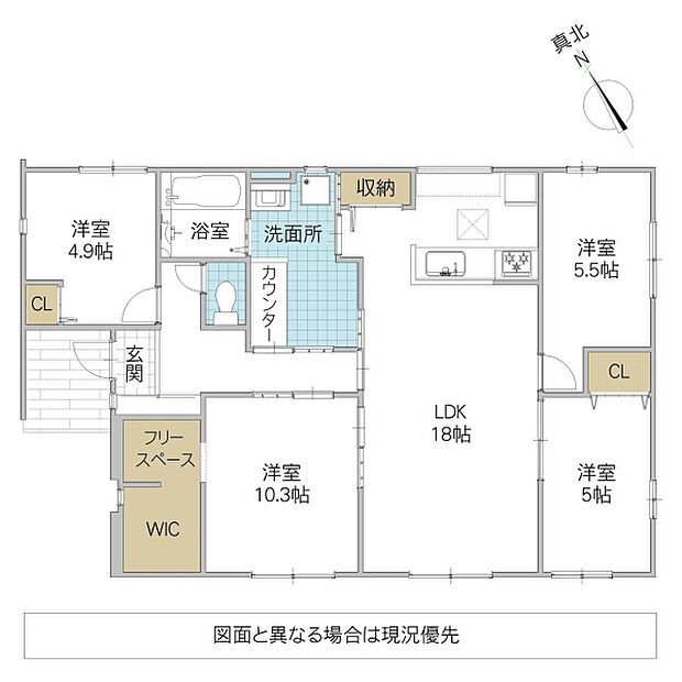 • 「建築条件付き土地」の「建物プラン例」は、土地購入者の設計プランの一例であり、プランの採用可否は任意です。