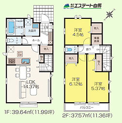| 間取り | 3SLDK 間取り内訳:リビングダイニングキッチン 15.7帖(1階)・洋室 4.5帖(2階)x2・洋室 6帖(2階)・収納 3帖(2階) |