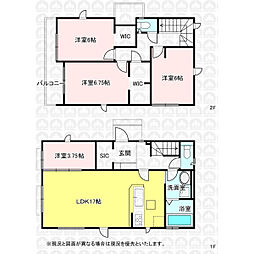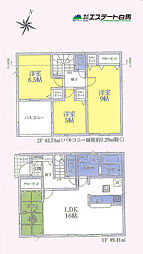| 間取り | 4LDK 間取り内訳:リビングダイニングキッチン 16帖(1階)・和室 5.2畳(1階)・洋室 5帖(2階)・洋室 6帖(2階)・洋室 8帖(2階) |