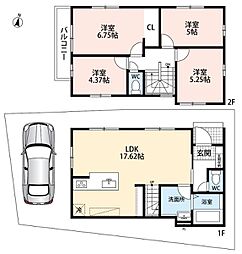 | 間取り | 4LDK 間取り内訳:リビングダイニングキッチン 18.1帖(1階)・和室 4.5畳(1階)・洋室 7.2帖(2階)・洋室 6帖(2階)・洋室 5.9帖(2階) |