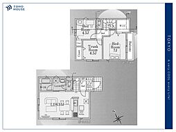 | 間取り | 2SLDK 間取り内訳:洋室 5.2帖(1階)・収納 5.2帖(1階)x2・リビングダイニングキッチン 20帖(2階)・洋室 6.2帖(2階) |