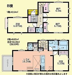 間取り内訳:洋室 6.8帖(1階)・収納 6.7帖(1階)・収納 6.5帖(1階)・リビングダイニングキッチン 16.2帖(2階)・洋室 5.2帖(2階)