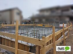 • 地面は整地され掘削が完了しています。これから鉄筋を組み上げていく工程に入ります。