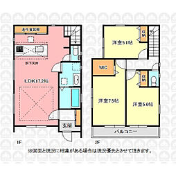| 間取り | 3LDK 間取り内訳:リビングダイニングキッチン 17.2帖(1階)・洋室 7.5帖(2階)・洋室 5.6帖(2階)・洋室 5.1帖(2階) |