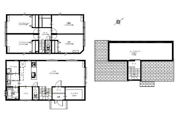 | 間取り | 2SLDK 間取り内訳:リビングダイニングキッチン 20帖(1階)・洋室 7.5帖(2階)・洋室 6.4帖(2階)・収納 6.5帖(2階)・収納 6.5帖(2階) |